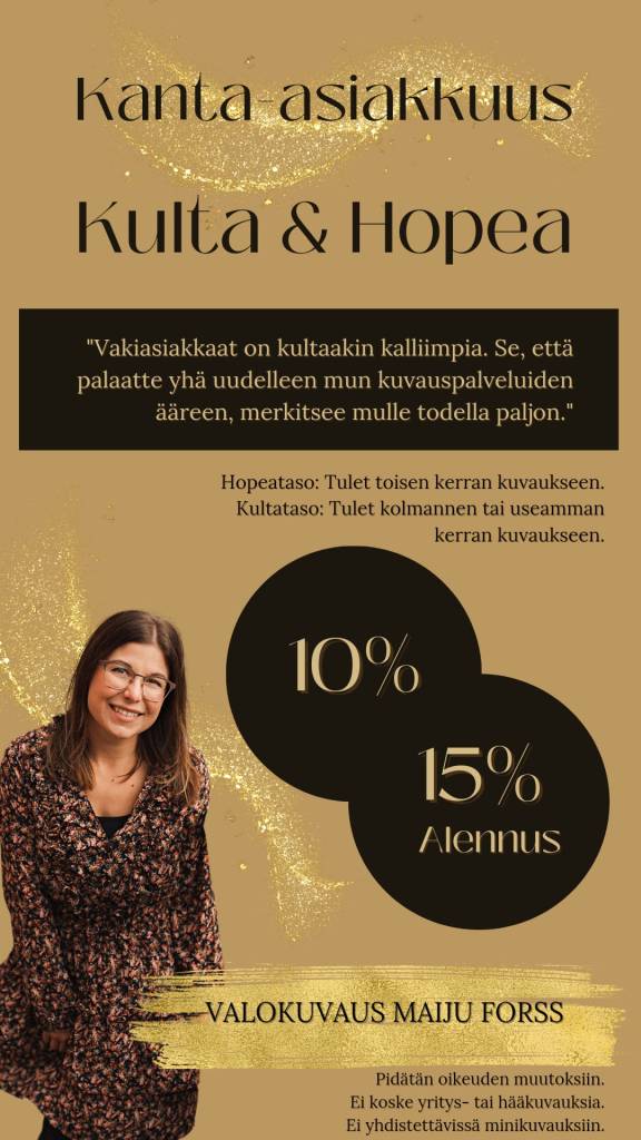 (Kuvausaika 1-2h, 30-60 valmista kuvaa)